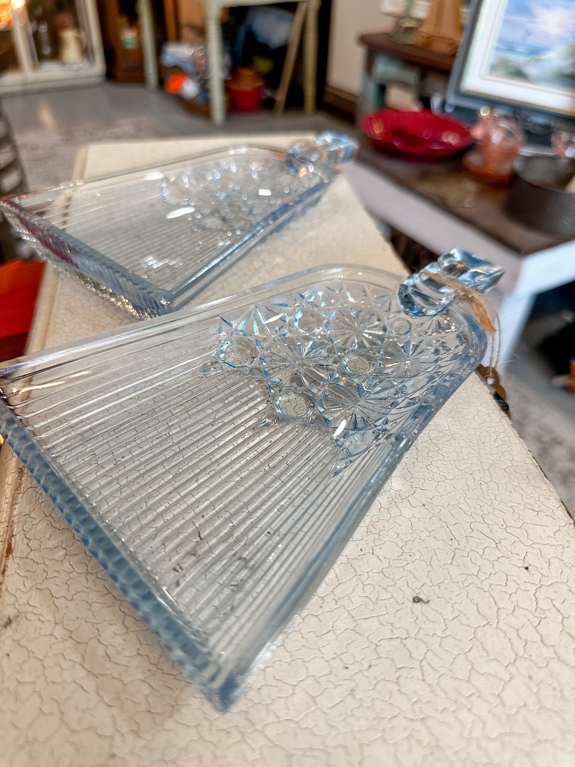 RARE Find! ANTIQUE EAPG PRESSED GLASS DAISY AND BUTTON Blue DUSTPAN TRAYS (priced individually)