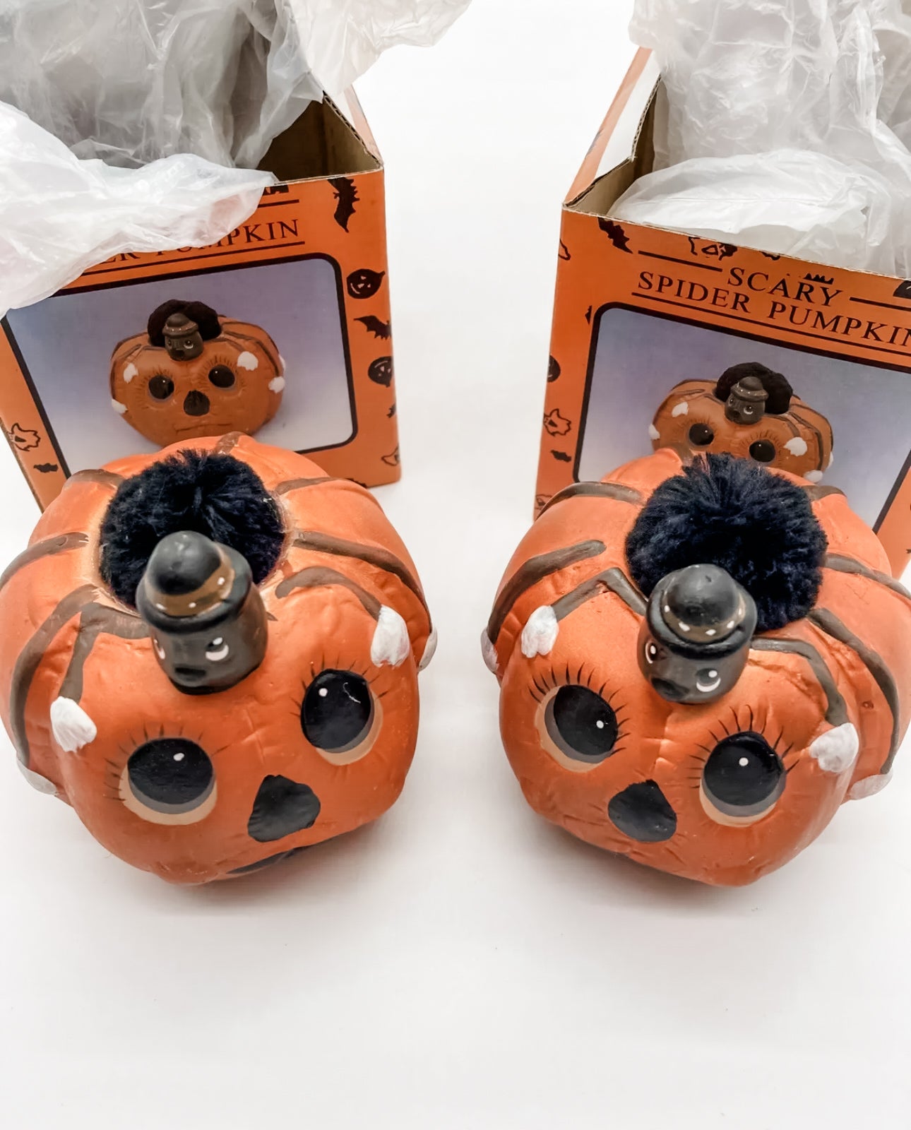 Vintage Scary Spider Pumpkin 1995 porcelain figurine. New/Old Stock with original box.